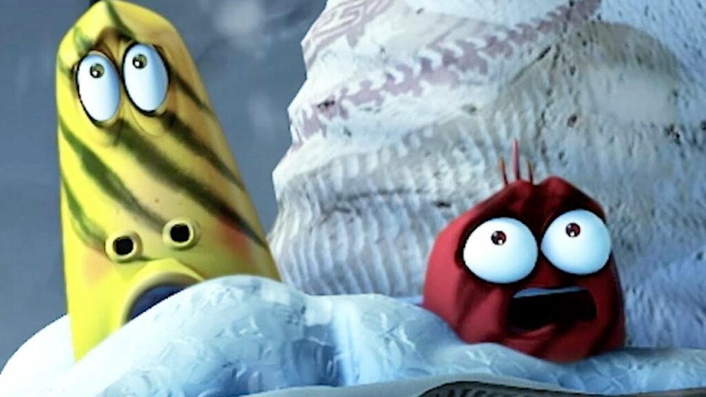 What happens next? A giant, goofy snowball fight explodes! Snowballs fly left and right, bugs slip and slide, and Red and Yellow laugh and dodge like crazy. It’s total winter chaos, but in the best, funniest way! The two larvae team up, make bigger snowballs, and defend their candy prize with big smiles and silly faces.